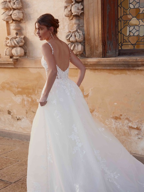 Да устоиш на очарованието на рокля 1262 е предизвикателство с нейния секси и зашеметяващ дизайн. С деликатни презрамки, структурирана горна част, украсена дантела с мъниста и впечатляващи прозрачни страници, тази рокля изявява смела и съблазнителна визия. Полата от тюл е елегантно завършена със дантелени детайли отпред и отзад.