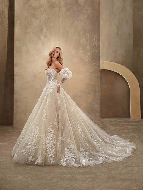 Стил 1539- рокля, която излъчва елегантност и блясък. Корсетът е покрит с флорална дантела и мъниста, които преливат в многослойна тюлена пола и шикозна френска дантела. Модела има допълнителна пола, която може да използвате за всички снимки и церемонии, а след това да имате лека и ефирна рокля за танците вечерта. За завършена визия може да добавим ръкави, ръкавици или красив испански воал.